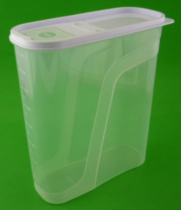 Przedmiotem sprzedaży jest wysokiej jakości duży pojemnik do przechowywania i dozowania płatków śniadaniowych oraz wszelkich innych sypkich produktów spożywczych. Nadaje się do zmywarki, mikrofali, zamrażarki.